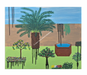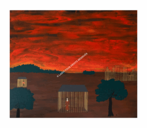 Ses toiles portent des thèmes puissants, enracinés dans le vécu :